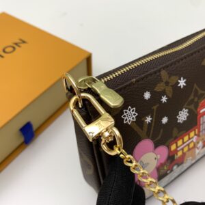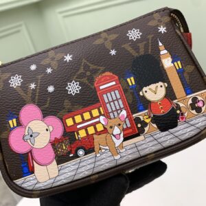 This Mini Pochette Accessoires clutch is made of Monogram canvas, inviting Louis Vuitton mascots Vivienne, Corgis, Royal Guards and Big Ben to gather in London. The multi-functional design continues the brand’s box-making heritage.