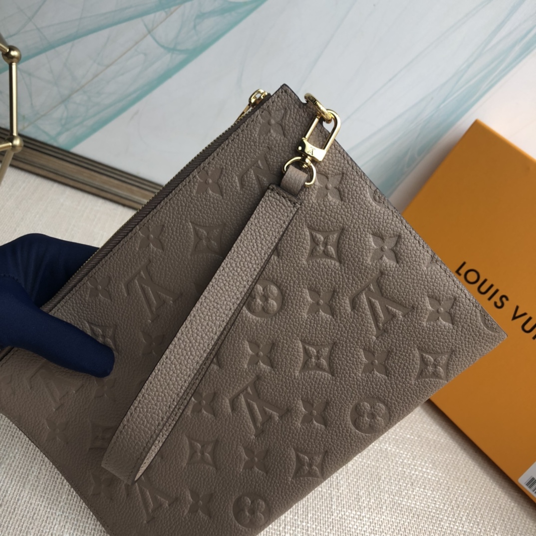 The Mélanie medium clutch is made of soft Monogram Empreinte leather with Monogram embossing slightly on the surface, with a detachable wrist strap, V-shaped front pocket and card slot, showing the fusion of elegance and function.