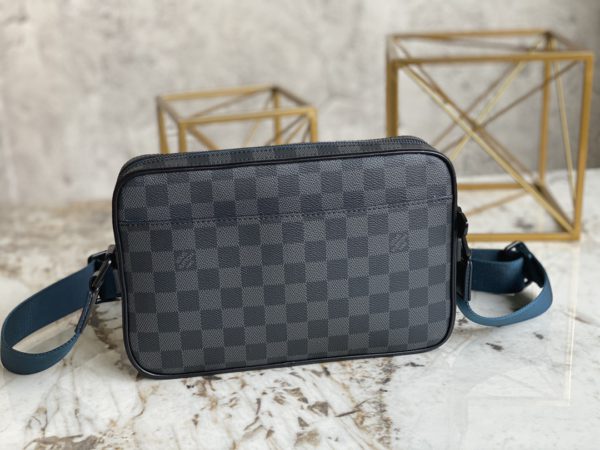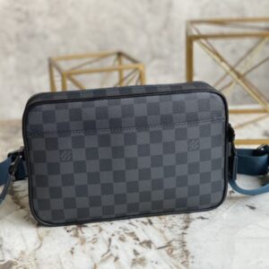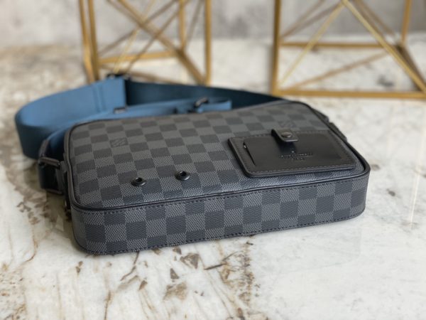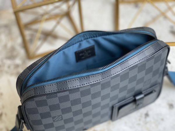 Men’s Messenger Bag Series Alpha Messenger Bag with black grid blue shoulder strap releases a modern atmosphere in the structure of classic Damier Graphite canvas and black metal parts.