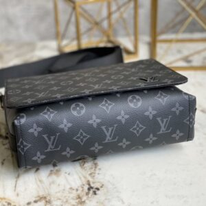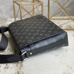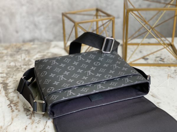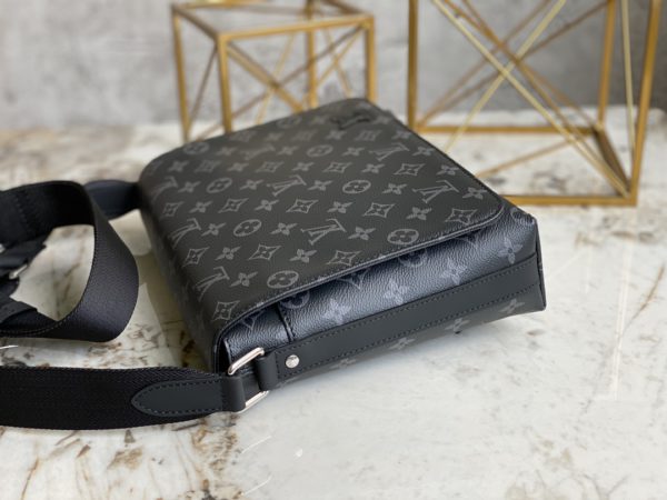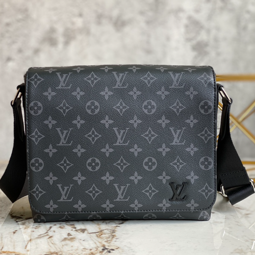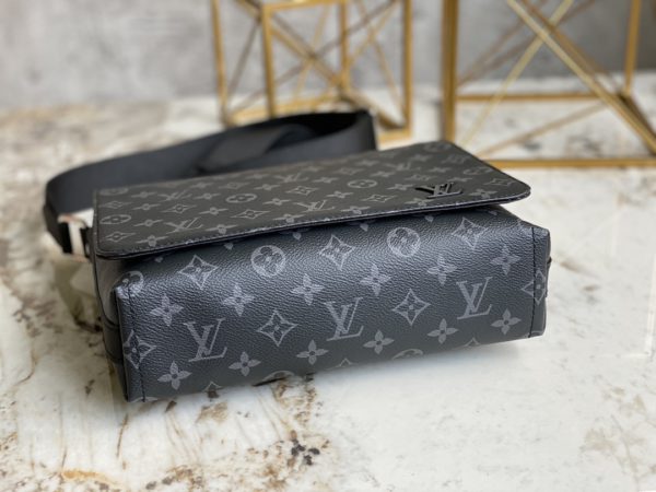 Black Flower Men’s Messenger Bag Series This District small messenger bag is made of Monogram Eclipse canvas and leather trim. Magnetic closures and a zipped back pocket keep items secure.