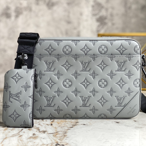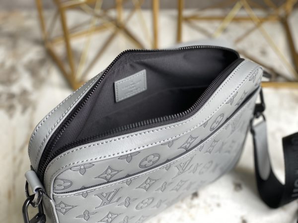Full leather gray men’s messenger bag series DUO messenger bag m46104 gray (embossed) M59827 This Duo messenger bag releases the modern innovation of Monogram Shadow leather. The soft calf leather subtly presents Louis Vuitton’s classic Monogram embossing, and the detachable coin purse on the shoulder strap can store cards and other personal items.