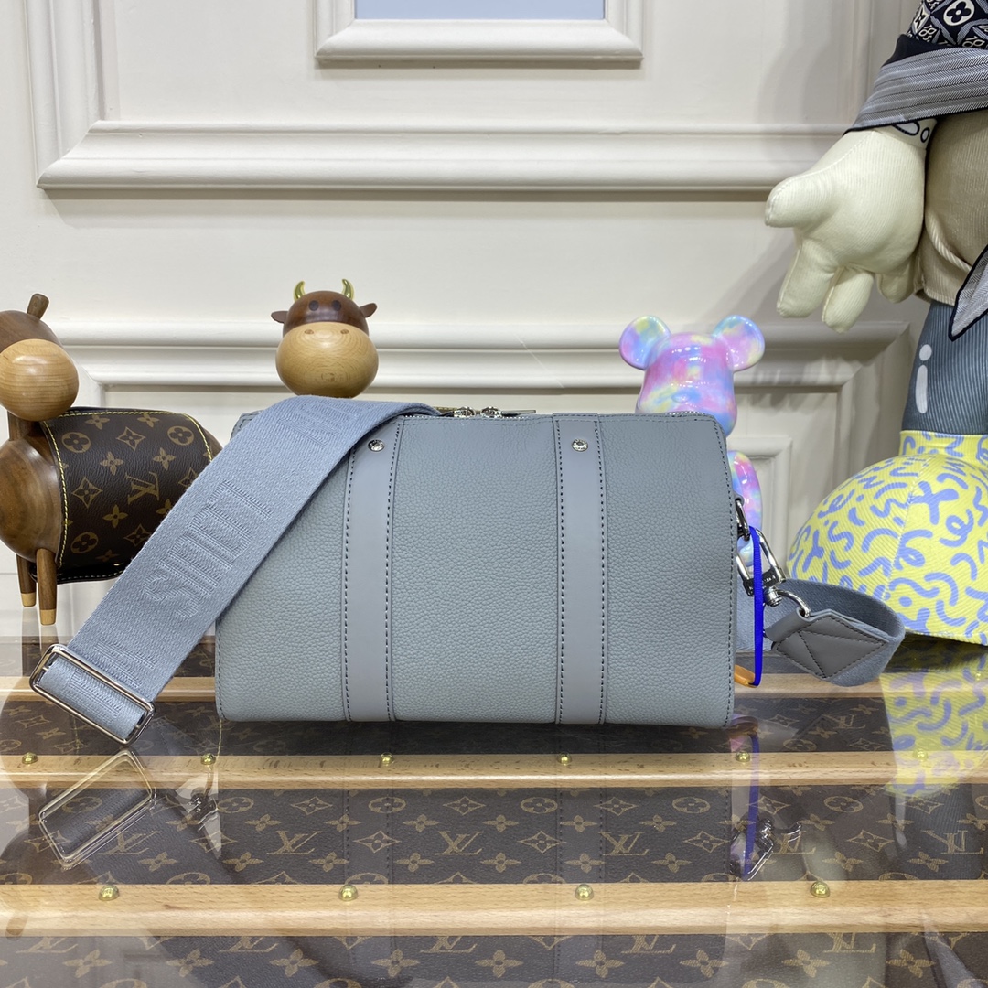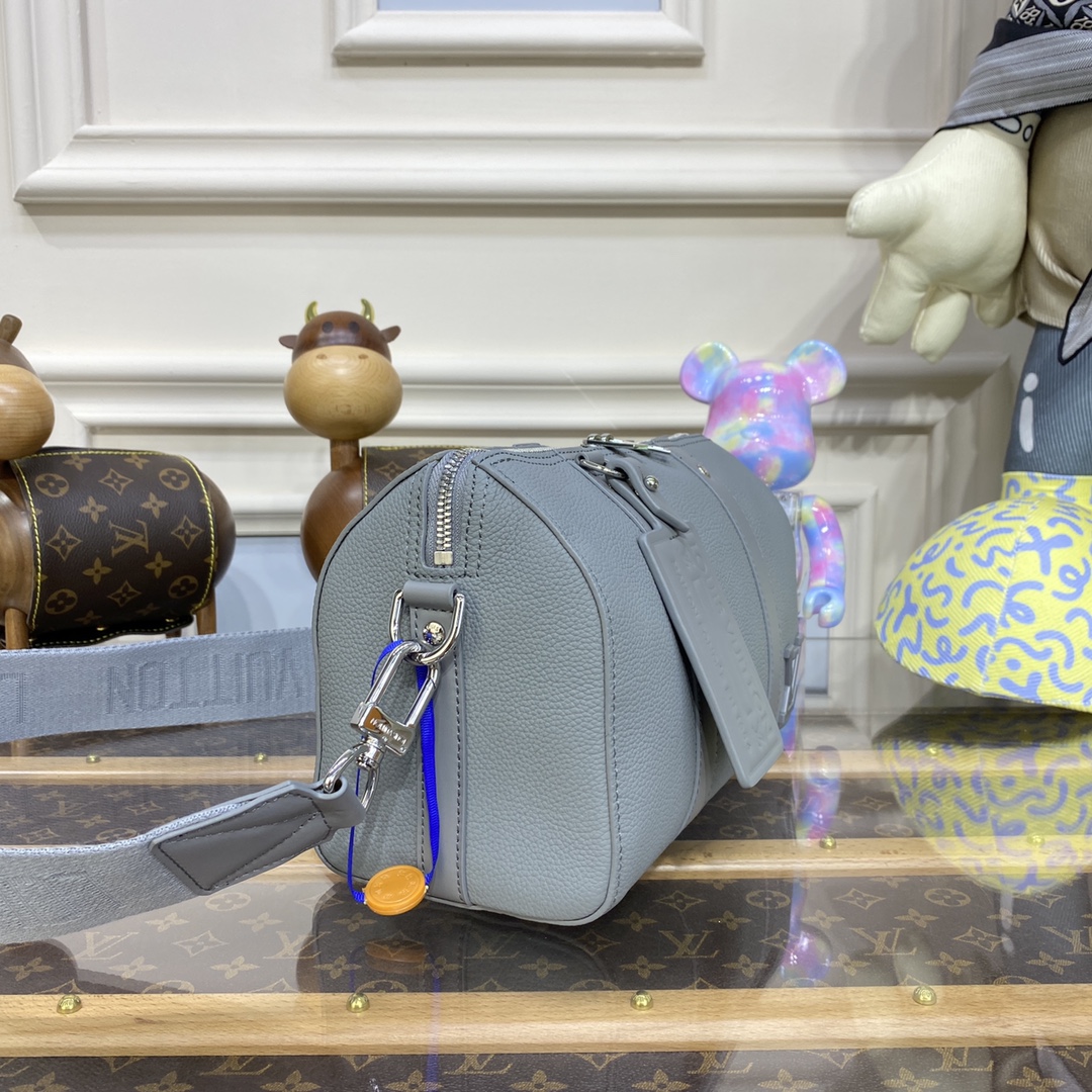 Menswear Artistic Director Virgil Abloh reimagines a classic bag – creating the Men’s City Keepall. Made of black grained leather with details in black and white Damier Distorted canvas. Decorated with initials.