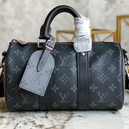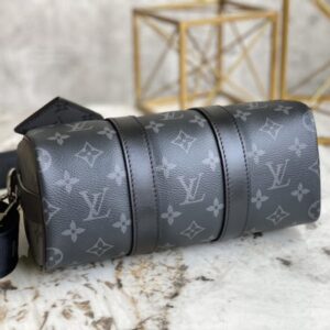 Black flower men’s pillow bag series This Keepall 25 handbag is made of Monogram Eclipse Reverse canvas, showing the elegant reinterpretation of Louis Vuitton’s classic patterns. Reinforced straps and a leather nameplate continue the Keepall collection’s signature elements, while a zip closure keeps personal belongings secure.