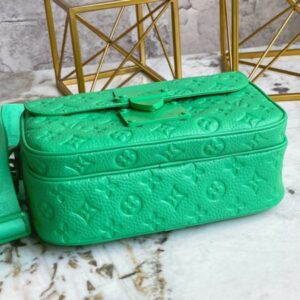Green full leather men’s messenger bag series S Lock messenger bag is made of Monogram Macassar canvas, and the new lock is inspired by the hard case lock designed by Georges Vuitton in 1886. A special finishing process gives this magnetic metal closure a bold and modern look. It also features ample zippered compartments, a hard case-style leather handle and an LV logo shoulder strap for stylish style and ease of use.