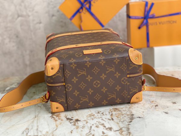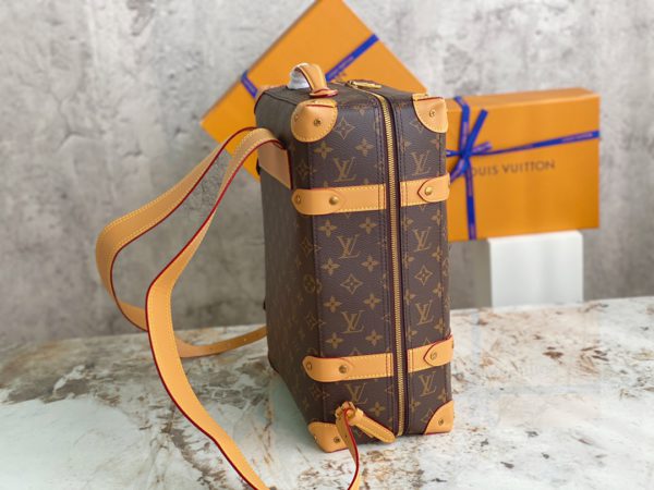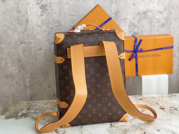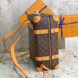 Presbyopia Backpack Series Men’s Artistic Director Virgil Abloh gave the suitcase configuration a backpack function, using Monogram coated canvas and cowhide trim to create this Soft Trunk small backpack, stitched with rivet corners. There is also a top handle for a portable experience. Monogram coated canvas-fabric lining-cowhide trim-copper gold-tone hardware-adjustable leather shoulder strap-leather top handle-pair of inner pockets-inner patch pocket.