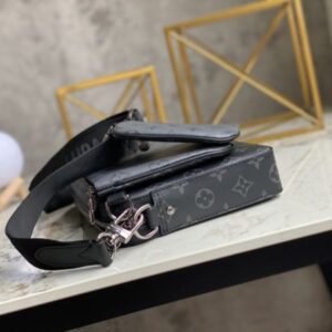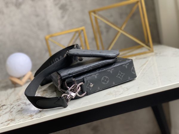 Black flower men’s three-piece Pochette Trio messenger bag series Pochette men’s three-in-one handbag is made of two classic canvases, and the iconic tone-on-tone gray pattern highlights the lines of this multifunctional design , in addition to the functions of a traditional messenger bag, it is also equipped with a detachable zipper bag and a coin purse attached to the strap.