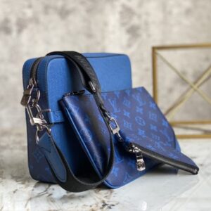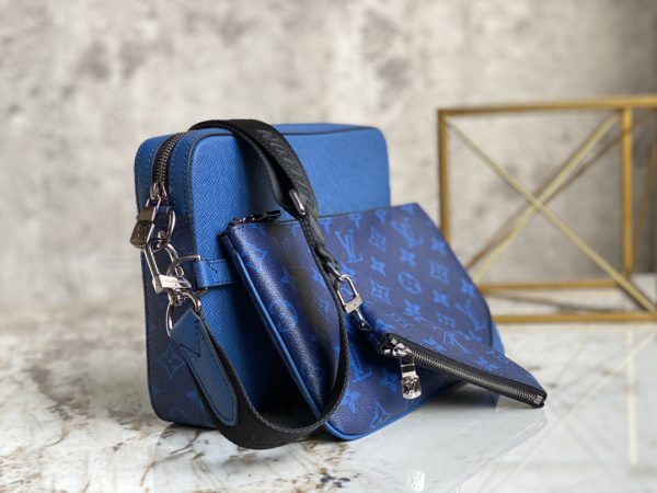 Blue flower men’s three-piece series M69443 TRIO messenger bag This Trio messenger bag is from the Taigarama leather goods series. It has a main compartment, a detachable zipper front pocket and a small coin pocket fixed on the shoulder strap. Effortlessly go with classic style.