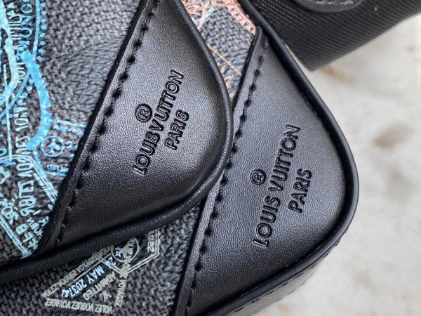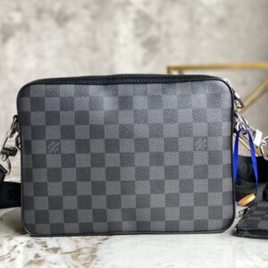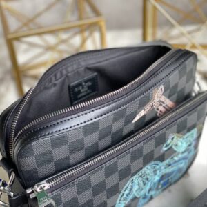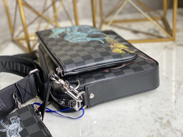 Heiger silk screen printing men’s three-piece series TRIO messenger bag N58040 Heiger (silk printing) This Trio messenger bag depicts wild animals on the surface of Damier Graphite canvas, and it can be seen from a closer look that it is made of a pattern that resembles a passport stamp composition. A zipped main compartment, a detachable small clutch and a coin purse attached to the adjustable shoulder strap provide three functions in one.