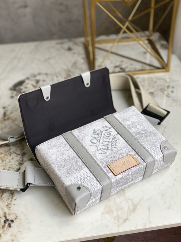 Gray men’s messenger bag series TRUNK shoulder bag 2021 autumn and winter series Trunk shoulder bag is made of brand-new Damier Salt canvas, and adopts the old-fashioned process of Louis Vuitton denim to give classic coated canvas a new trendy texture. The compact silhouette has an adjustable shoulder strap so you can wear it cross-body or worn around the waist.