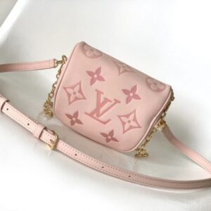 Mini Bumbag handbag from the LV Gradient series, which renders the gradient midsummer color for the Monogram embossing of Monogram Empreinte leather. The on-trend shape features a zipped main compartment, and a Louis Vuitton leather label accents the front pocket. Clever use of the detachable chain and detachable and adjustable shoulder strap, the shoulder and crossbody can be converted at will.