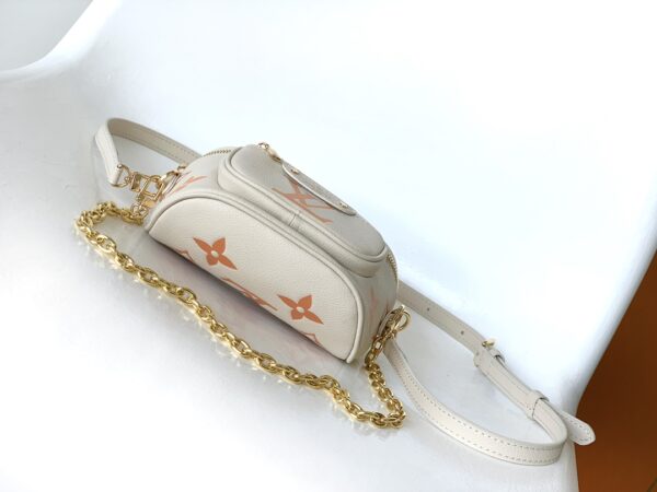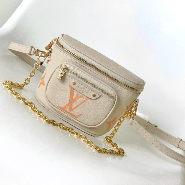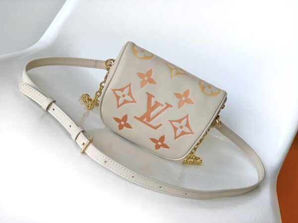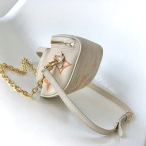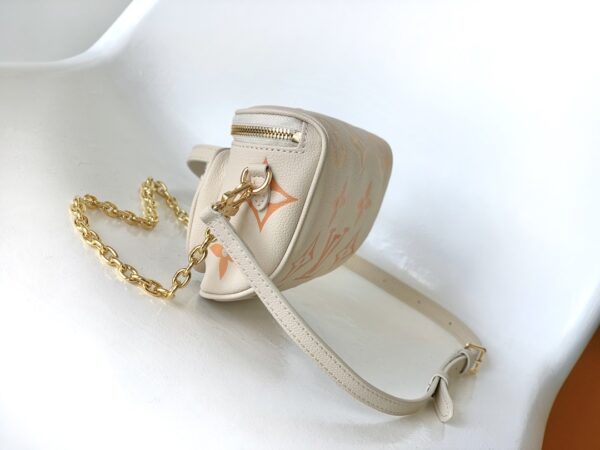 Mini Bumbag handbag from the LV Gradient series, which renders the gradient midsummer color for the Monogram embossing of Monogram Empreinte leather. The on-trend shape features a zipped main compartment, and a Louis Vuitton leather label accents the front pocket. Clever use of the detachable chain and detachable and adjustable shoulder strap, the shoulder and crossbody can be converted at will.