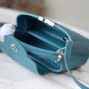 Blue ostrich leather mini Capucines ostrich leather handbag, moderate hardness handle, gorgeous buckle connecting the handle, spacious and practical shape, etc. The drop cover can be used in two ways, and it can be placed outside the bag to show the fashion trend of the Monogram flower pattern.
