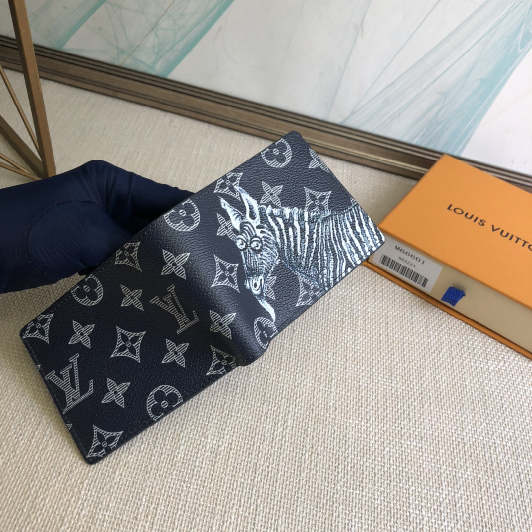 Practical Multiple wallet in Monogram canvas featuring zebra and elephant prints by renowned artists, the Chapman Brothers, and ample slots for credit cards and receipts. Fits easily in most pockets.