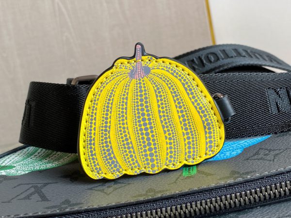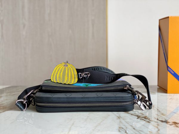 Silk screen men’s bag mobile phone case series LV x YK Trio messenger bag M69443 from Louis Vuitton x Yayoi Kusama cooperation series made of Monogram Eclipse canvas and Monogram Eclipse Reverse canvas. A signature tonal pattern accentuates the lines of this versatile building design. In addition to the functions of a traditional cross-body handbag, it is also equipped with a detachable zipper pocket and a coin purse attached to the strap.