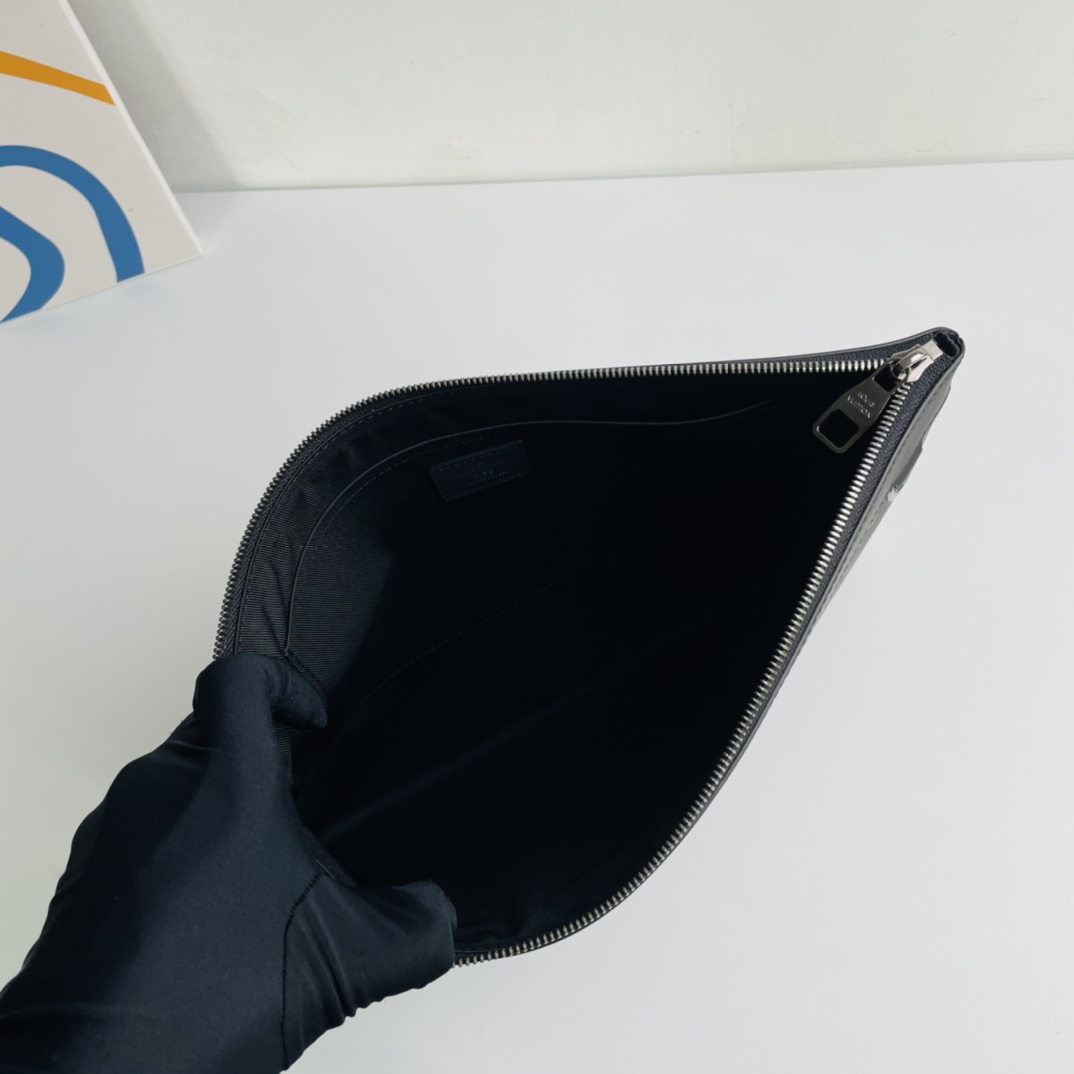 Crafted from soft Monogram Eclipse canvas, this bag is compact and functional for storing documents and other personal belongings. Elegant and stylish, it can be held by hand or carried in a bag. All-steel hardware, matching gun-colored zippers.