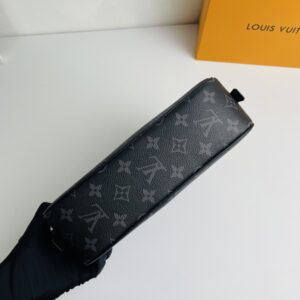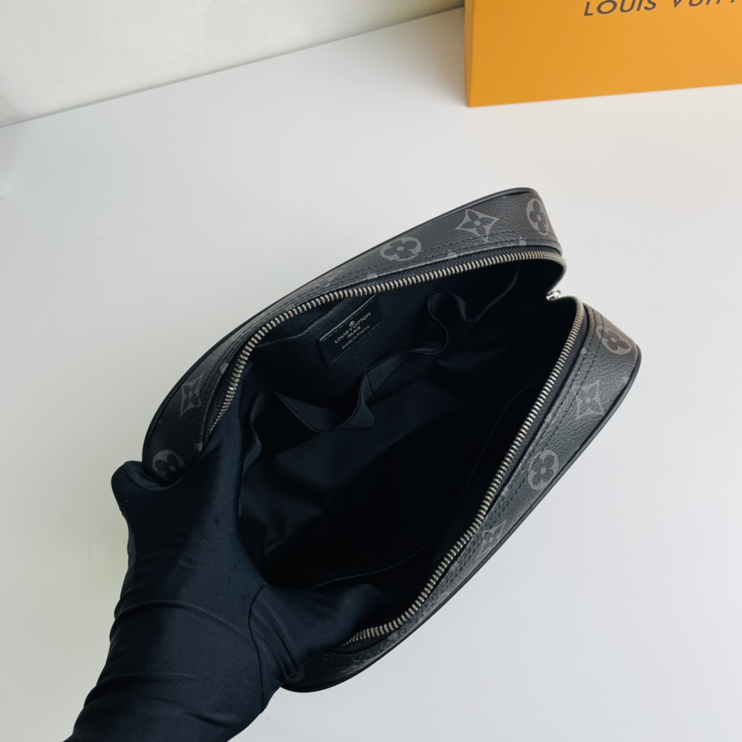Exclusive real shot! Today’s traveler expects a practical toiletry bag that fits easily in a suitcase for excursions. Distinctively crafted from thick Monogram Eclipse canvas and leather, this large toilet bag is distinctive.