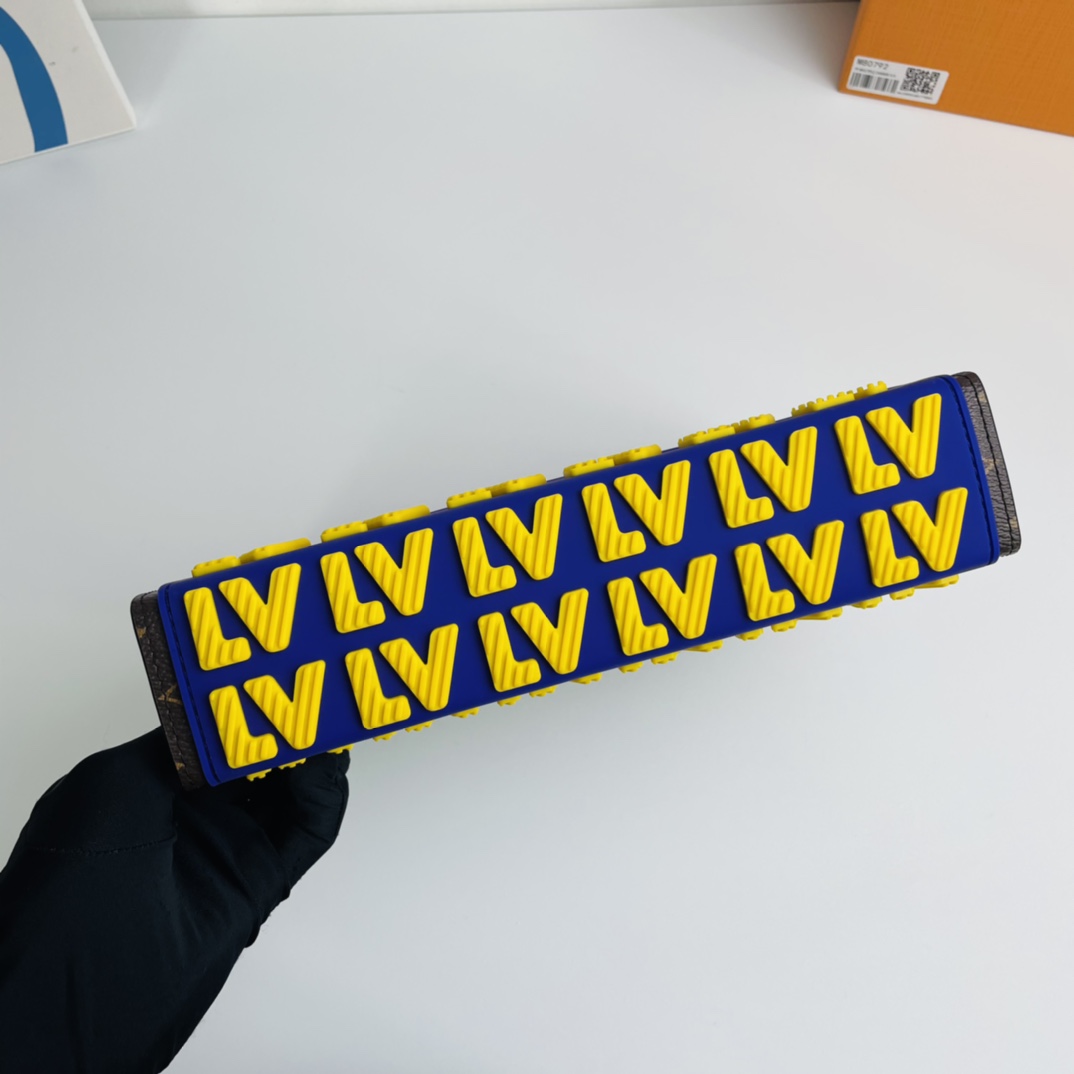 Cut from Monogram Eclipse canvas, this style announces a playful twist on the Rubber theme with latex letters. The sturdy new MM bag easily organizes personal essentials.