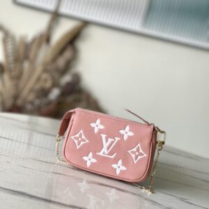 Pink Silkscreen is embossed with classic Monogram patterns on soft Monogram Empreinte leather, releasing elegant charm with two-color design. Can be hung on a handbag or belt through a chain