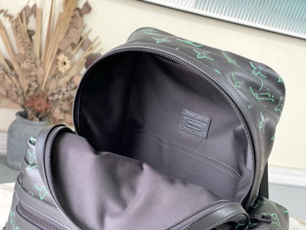 Full leather backpack series This backpack is made of soft texture and decorated with delicately printed Monogram Shadow calfskin. The full leather embossed side double pockets have a dynamic style. This backpack features an outer pocket for easy access, a comfortable leather strap and top handle for easy hand-carrying and shoulder-carrying.