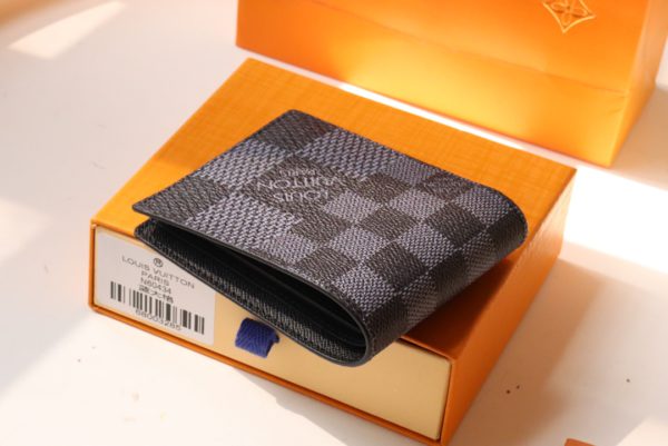 The new Multiple wallet design combines different sizes of checks and is made of Damier Graphite three-dimensional canvas in a colorful and bright navy blue, reinterpreting the Louis Vuitton signature pattern in a contemporary style. Smartly designed, with multiple compartments for cash and banknotes, and five credit card slots, it is perfect for Damier lovers who prefer a small and practical wallet.