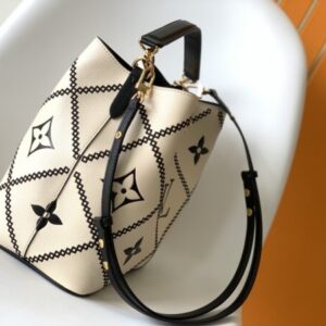 This NéoNoé bucket bag is made of soft Monogram Empreinte leather. It presents unique patterns with printing, embossing and embroidery. It pays tribute to the quilted lining design of the brand’s hard case and leads the 2022 spring and future fashion.