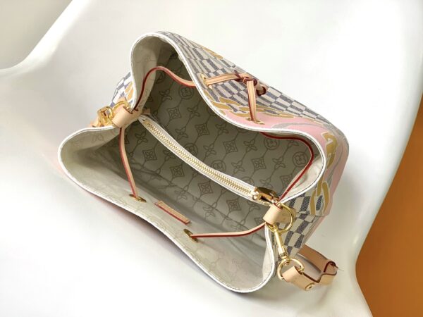 NéoNoé medium handbag is made of Damier Azur canvas, reflecting the nautical print composed of rope and chain patterns, flying summer fashion freely. The zipper inner pocket can properly keep the accompanying items, and the adjustable shoulder strap can realize long or short shoulder and cross-body options.