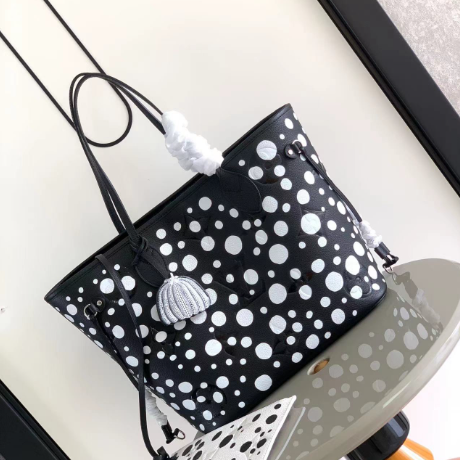 This L Louis Vuitton once again joined hands with Yayoi Kusama to place this LV x YK Neverfull medium-sized handbag in the infinite wave-dot universe to explore the source of inspiration of this Japanese artist. The polka-dot pattern is like a star on the surface of the cow leather, the Monogram embossing lays the foundation of the brand, and the pumpkin-shaped decoration highlights another classic image in Yayoi Kusama’s works.