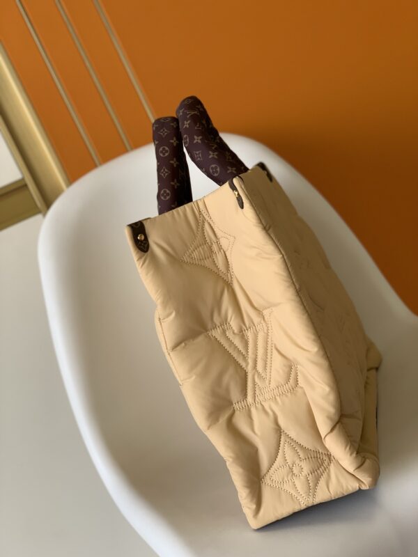OnTheGO large handbag is made of Econyl recycled nylon, declaring the Louis Vuitton EcoDesign action concept. Monogram embroidered graphics combined with padded texture, plenty of room for business, shopping or travel needs. The long shoulder straps and top handle offer a variety of comfortable carrying options.