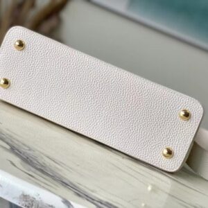 Ostrich pattern small Capucines handbag is made of Taurillon leather to create an exquisite shape, and the flap, handle and LV letters are wrapped in ostrich leather. The flip cover can be opened or closed to read the LV logo, and the detachable wide leather shoulder strap is full of modern style.