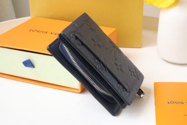 Crafted from Monogram Empreinte soft grained calfskin embossed with Louis Vuitton’s signature Monogram motif, this sleek design is compact yet roomy, with an exterior patch pocket, zipped coin pocket, bill compartment and six credit card slots.