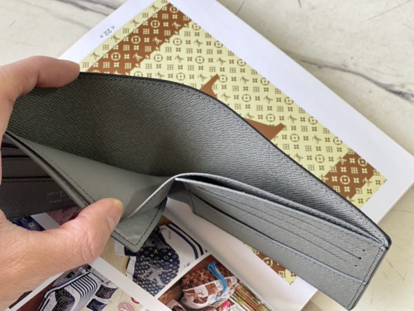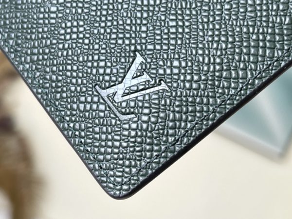 Saffiano Green This Slender Wallet features a calm tone of Taïga embossed leather and a slim profile that includes card slots and bill compartments, and fits easily in most pockets.