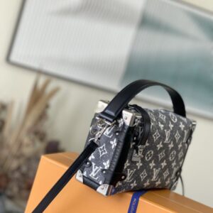 Cruise early spring show announced the return of classic elements, giving Monogram jacquard denim a rustic sand wash effect, and using it to shape a new Side Trunk handbag. The chic, rugged texture of the fabric is complemented by embossed leather trim and polished hardware, telling the story of traditional hard case inspiration. The handle and shoulder strap are detachable for a variety of styling possibilities.