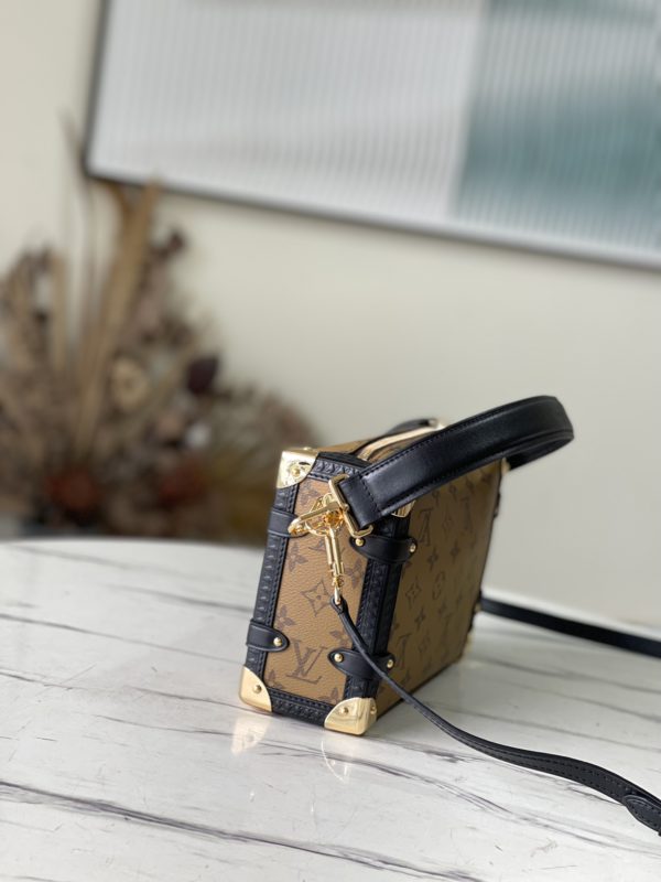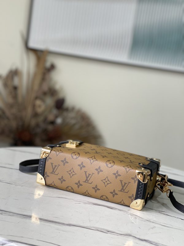 Yellow flower black leather Nicolas Ghesquière repeatedly explored the heritage of box making to create this Side Trunk small handbag. Monogram canvas is combined with leather trim, and the leather zipper puller is creatively connected with the iconic S-lock buckle, and the reinforced metal corners gather the sight together. The wide handles and thin leather shoulder strap are detachable.