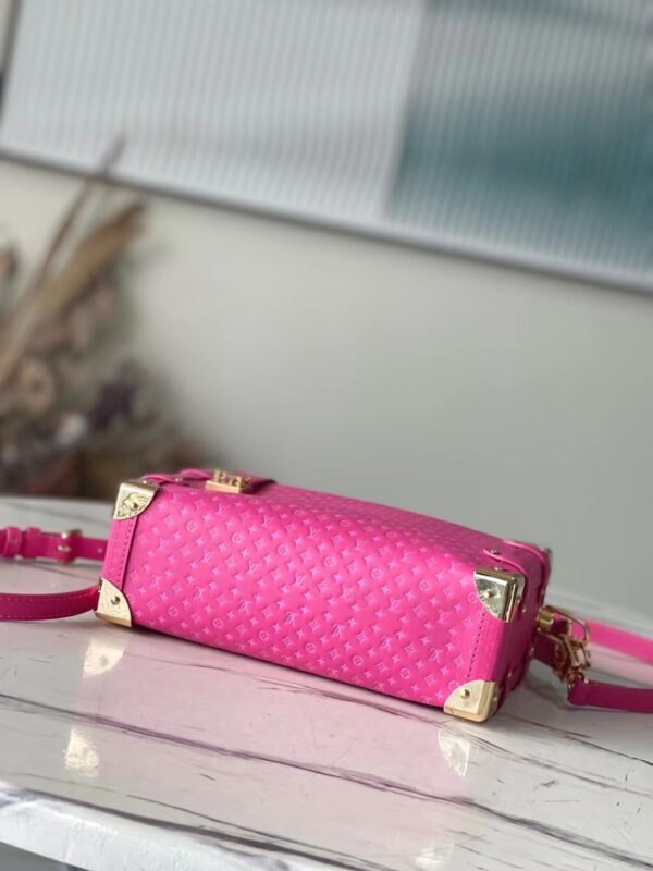 Full leather bag is inspired by the suitcase. The overall use is the classic monogram, the bag is surrounded by a metal edge design, retaining the signature hard box technology, and perfectly blending leather and metal, soft and hard, which not only shows the softness of the leather but also incorporates a bit of laziness and casualness . Dimensions: 24.5×16.5×8.5cm (LxHxW)