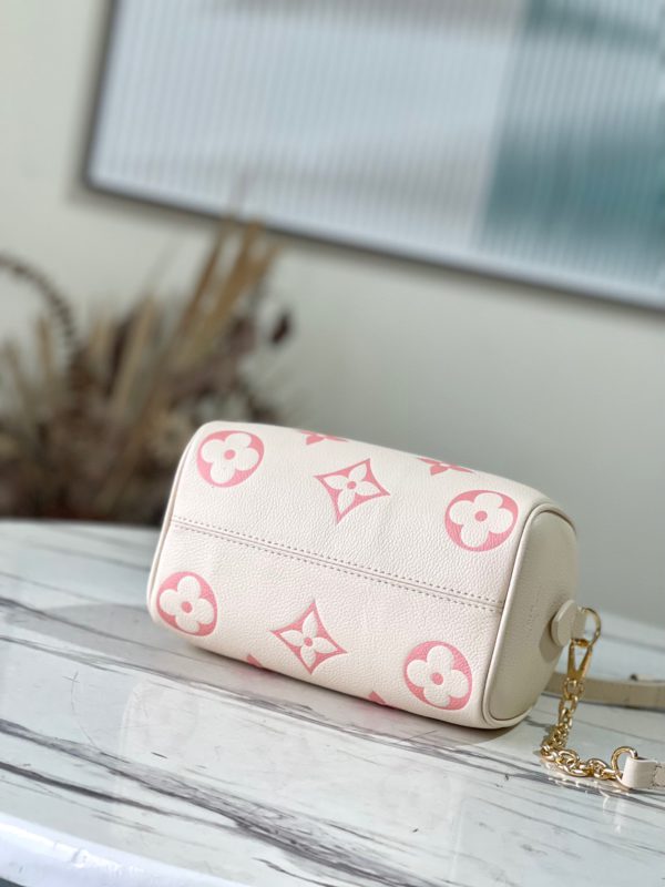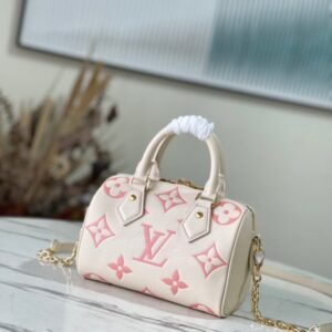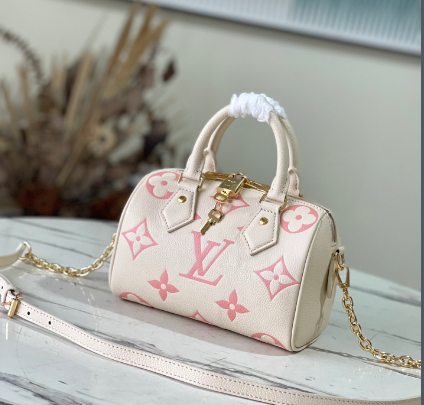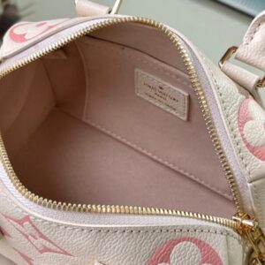 This Speedy Bandoulière 20 handbag is made of Monogram Empreinte leather, embossed and printed to present the Monogram pattern. The rolled leather handle, padlock, and rounded shape are inspired by the Speedy duffle bag, introduced in 1930.