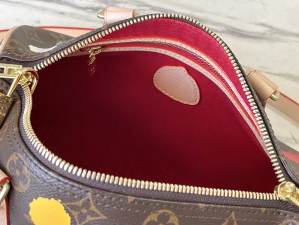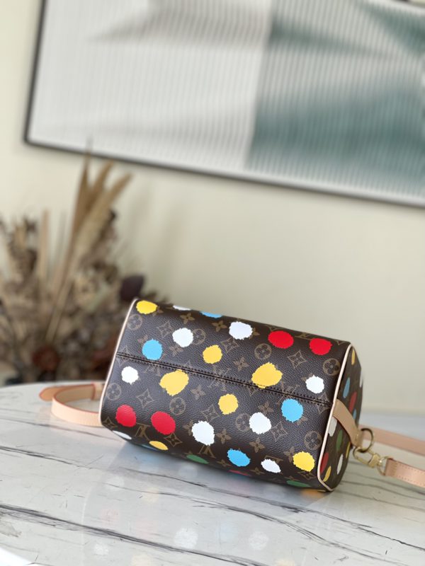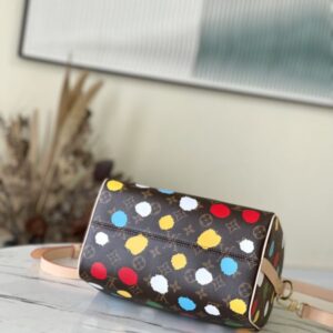 Speedy Bandoulière 25 handbags from the x Yayoi Kusama collaboration series, witnessing the integration of artistic creativity and exquisite craftsmanship. Japanese artist Yayoi Kusama’s iconic polka dots lay out the Monogram canvas, which presents a three-dimensional hand-painted texture through complicated silk screen printing techniques, injecting artistic thinking into urban design.