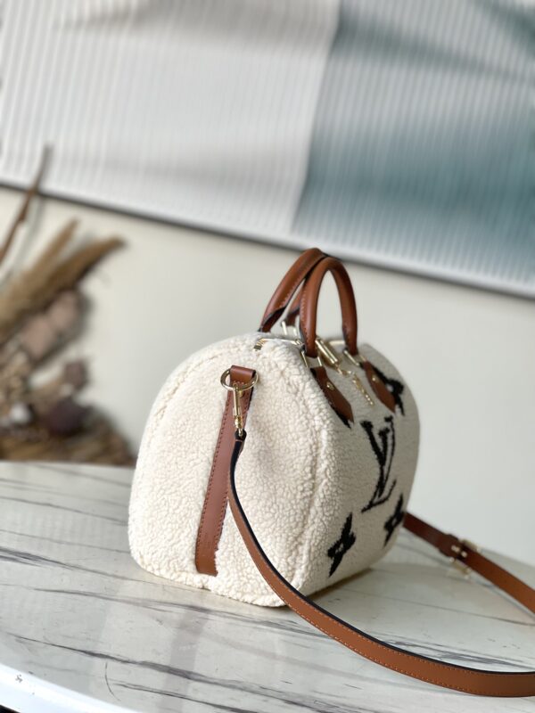 The PPPGiant Monogram pattern, showing the trend of the winter series. Rolled leather top handles and removable and adjustable leather shoulder strap allow for a variety of carrying options.