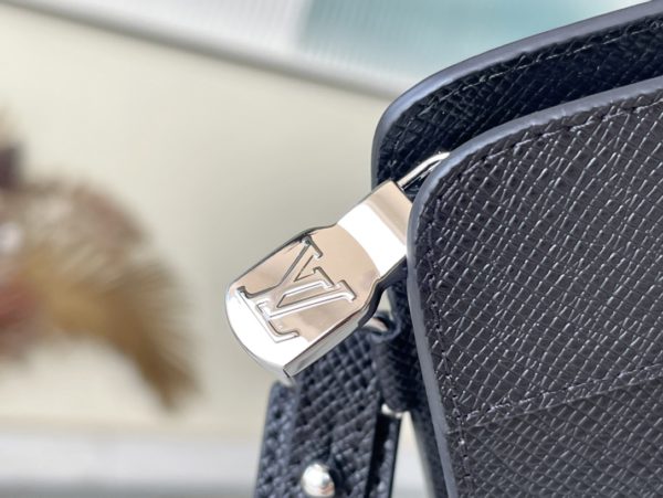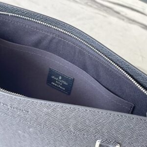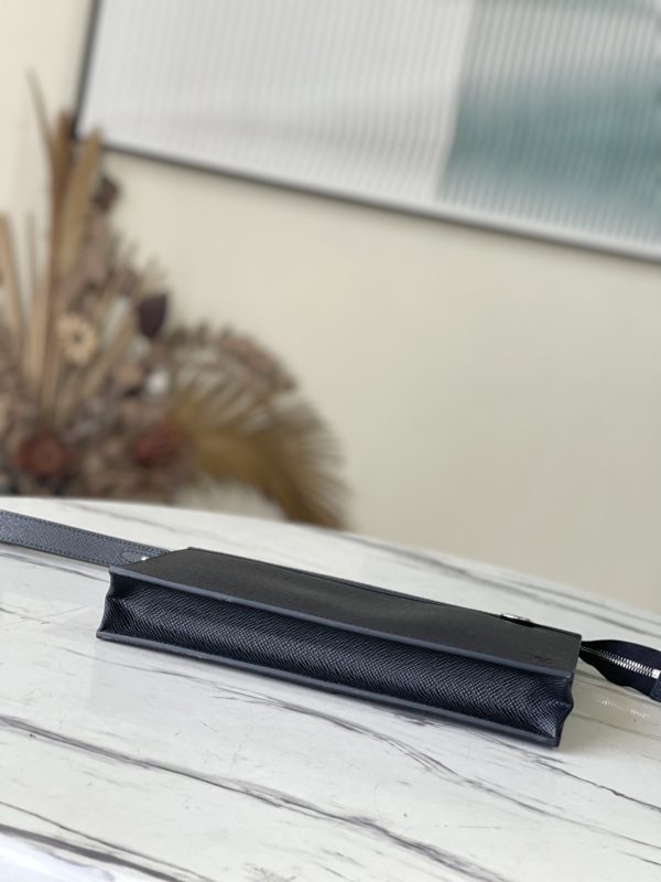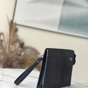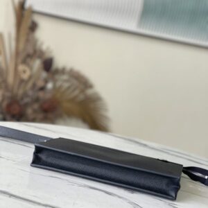 This Standing Pouch clutch is made of Taiga leather to create ample space, which can comfortably accommodate tablets, mobile phones and other small objects. The surface of the letters complements the texture of the body of the bag, and the detachable wrist strap is convenient for daily travel.