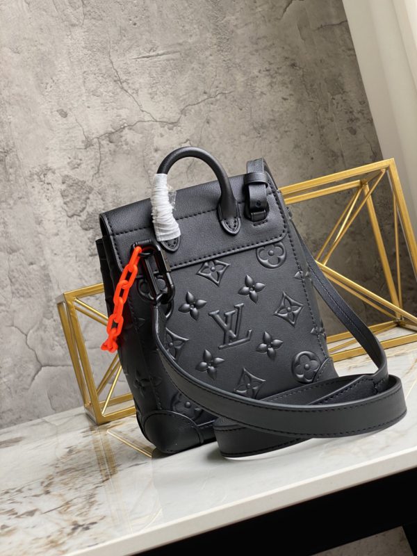 Full leather black Zoom with friends This compact Steamer Nano men’s handbag is equipped with a leather handle and a detachable shoulder strap on the top, which is convenient for hand or shoulder.