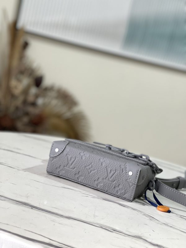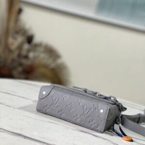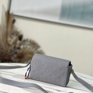 Gray embossed soft Monogram Taurillon leather complements classic elements like a Steamer style chain. Comes with an adjustable shoulder strap for easy carrying. The zippered compartment offers plenty of storage space, and the front pocket flap and magnetic closure keep your belongings secure.