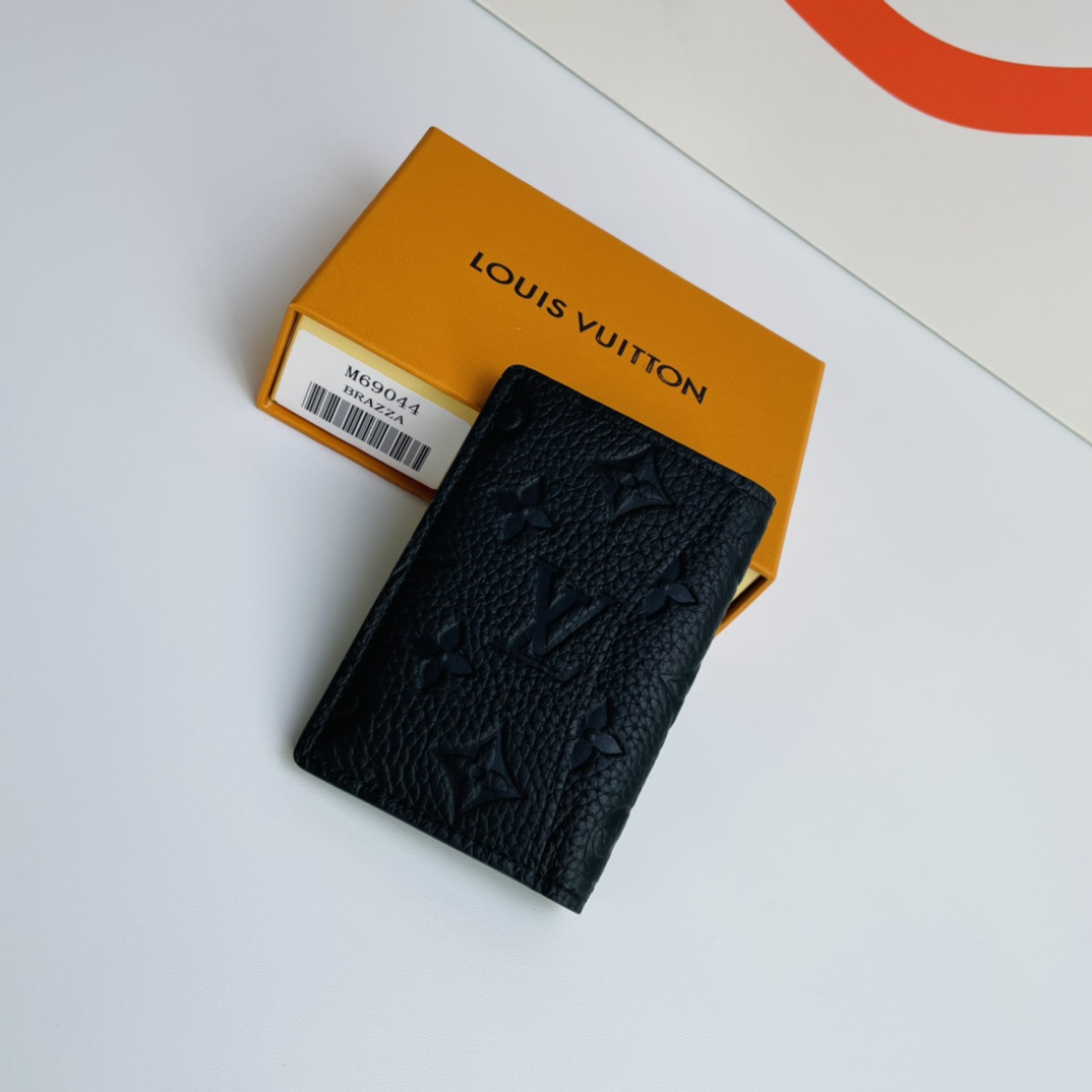 A pocket wallet in Taurillon leather embossed with the classic Monogram motif. Small in size but generous in capacity, it includes functional designs such as pockets and card slots.