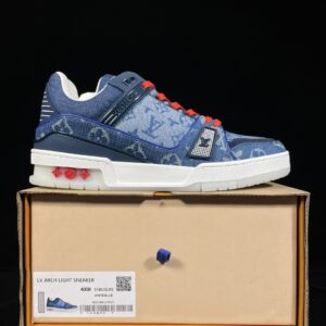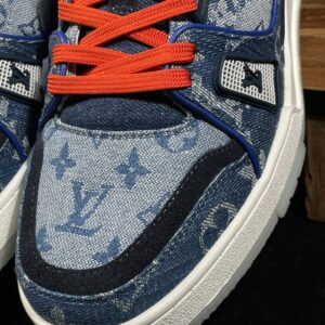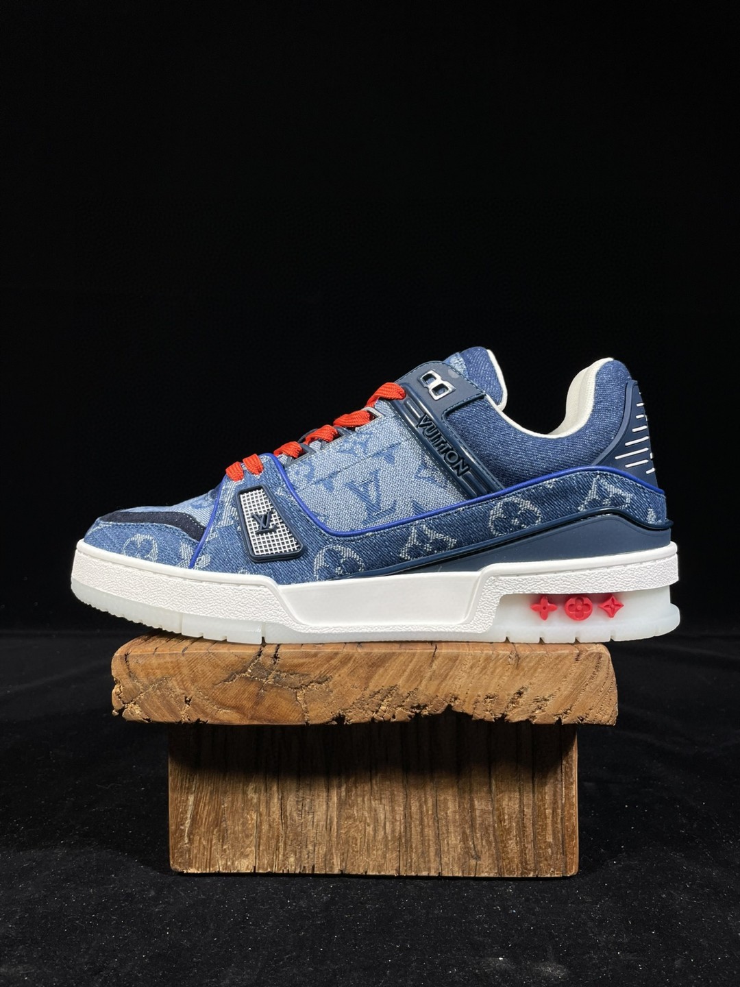 Louis Vuitton Trainer China Exclusive Denim Blue and Red Low-Top Casual Shoes, Skate Shoes for Men and Women 1A8TSK