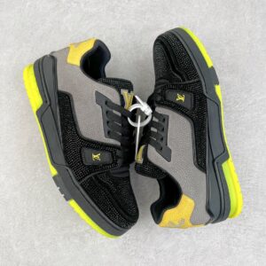 Louis Vuitton Trainer Line Rhinestone Black and Yellow Low-Top Casual Shoes Sneakers Men’s and Women’s Footwear 1A9JXJ