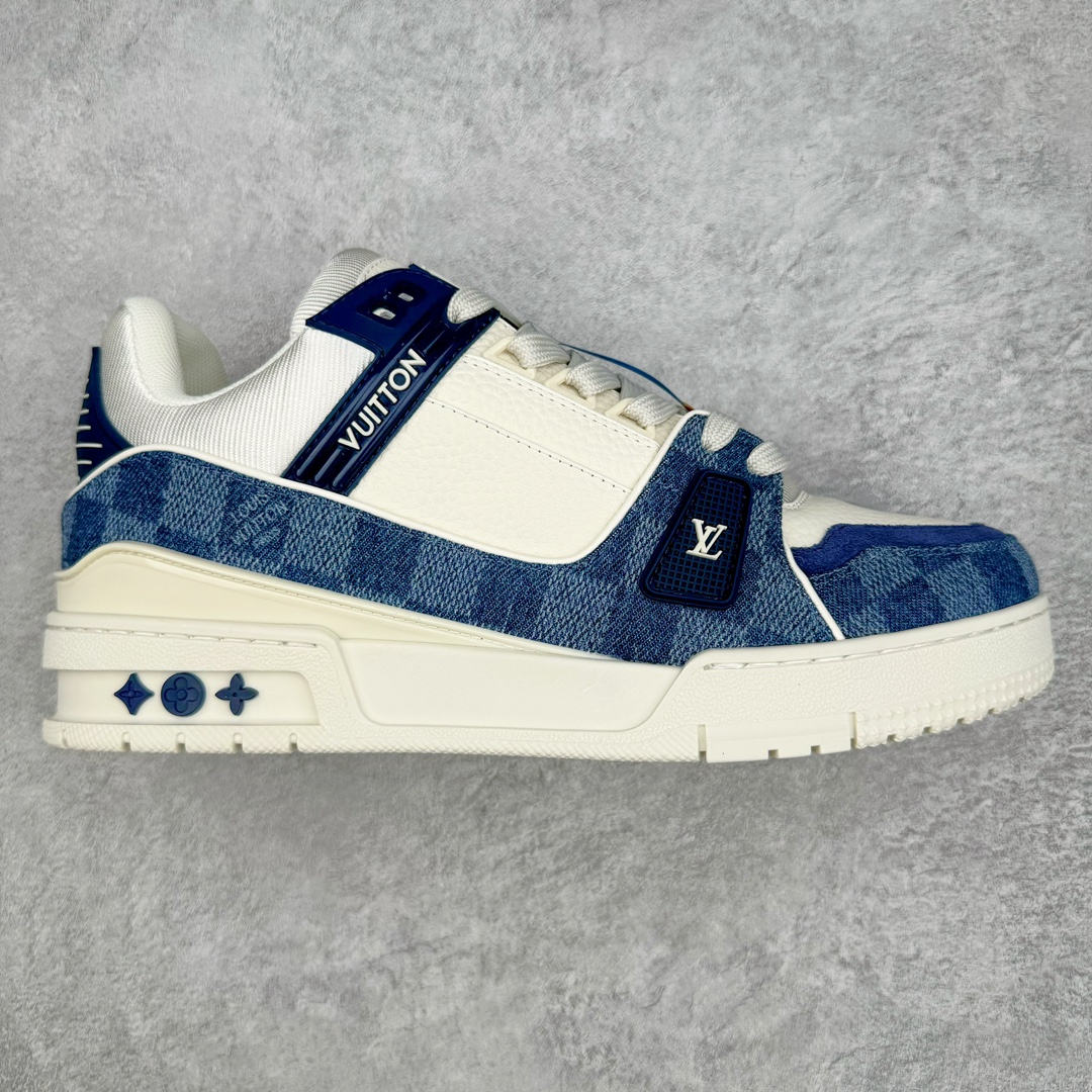 Louis Vuitton Trainer LV Low-Top Casual Shoes Sneakers Men’s & Women’s Footwear White & Blue Checkered Pattern 1ACPRW