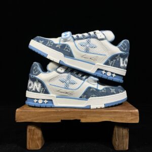 Louis Vuitton Trainer Velcro Fastening Blue and White Low-Top Casual Shoes Sneakers Men’s and Women’s Footwear 1A9ZI6