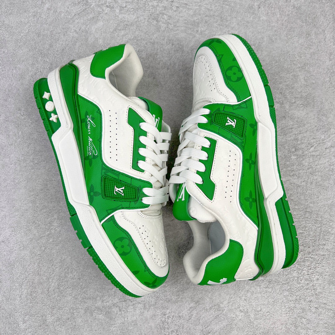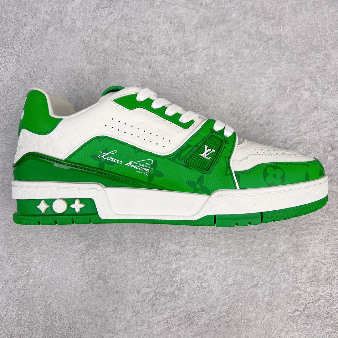 Louis Vuitton Trainer White-Green Low-Top Casual Shoes, Skate Shoes, Trainers for Men and Women 1AANFY