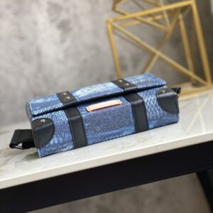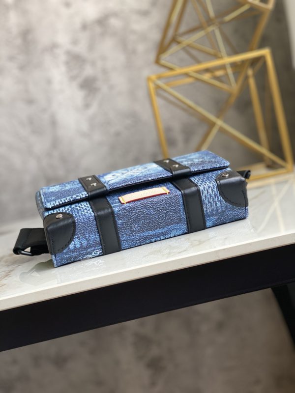 Blue men’s messenger bag series TRUNK shoulder bag 2021 autumn and winter series Trunk shoulder bag is made of brand-new Damier Salt canvas, using Louis Vuitton denim’s old-fashioned technology to give classic coated canvas a new trendy texture . The compact silhouette has an adjustable shoulder strap so you can wear it cross-body or worn around the waist.