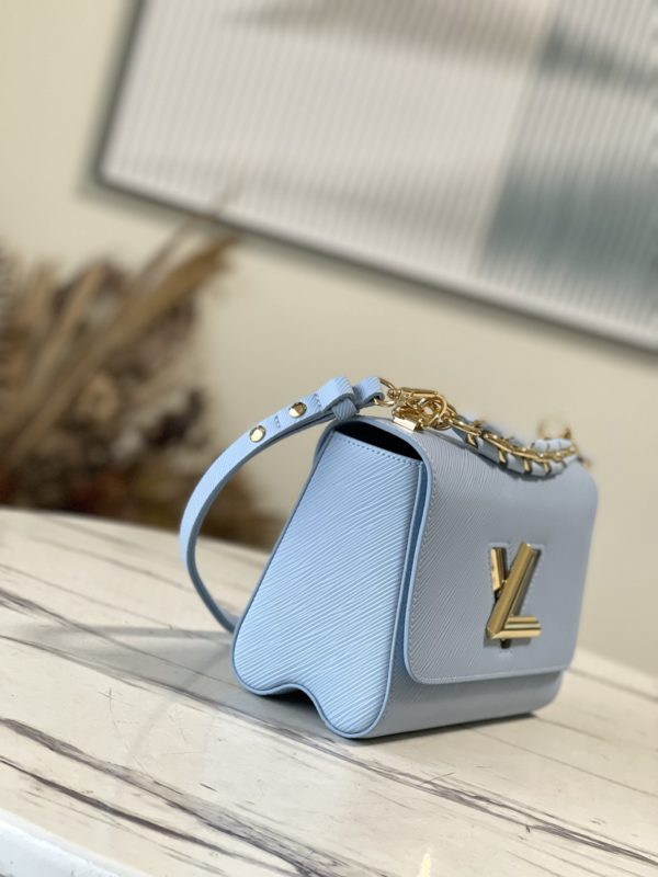 Blue In the spring of 2023, a new version of the Twist medium braided chain bag will be launched. The epi grained leather bag is shiny, with a detachable leather braided chain, Twist twist lock and detachable, adjustable shoulder strap. There are various ways to carry it.
