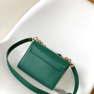 Twist small handbag integrates hand-enameled Monogram flowers into double chains, which complements the color of the Epi grained leather body. Whether worn as a delicate embellishment or attached to a leather shoulder strap, it can exude elegance.