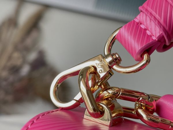 This Twist small handbag in Epi grained leather presents an unassuming and feminine color style, and the detachable leather braided chain highlights the fashion sense, with a Twist twist lock and detachable and adjustable shoulder strap, carrying it on the back There are many ways.